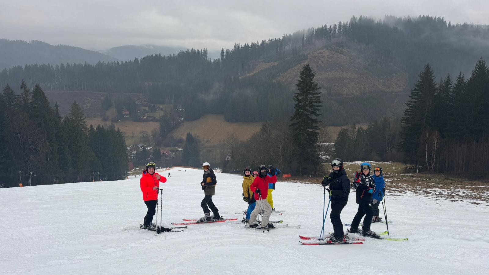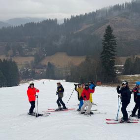 V neděli jsme šťastně dorazili do Ski areálu Kyčerka, ubytovali se a po krátkém odpočinku jsme žáky rozdělili do družstev podle jejich lyžařských dovedností. Hned poté jsme vyrazili na svah a pustili se do prvních tréninků, které odstartovaly celý týden plný pohybu. V dalších dnech všichni pilně pracujeme na zlepšování techniky a jistoty na lyžích. Každý den je vidět velký pokrok a radost z toho, co se žákům daří zvládnout. Přestože nám počasí klade do cesty výzvy, kdy teploty se drží nad nulou a sněhové podmínky nejsou ideální. I tak se nevzdáváme a s chutí pokračujeme dál. O to více si vážíme každého povedeného oblouku i společně strávených chvil na horách.