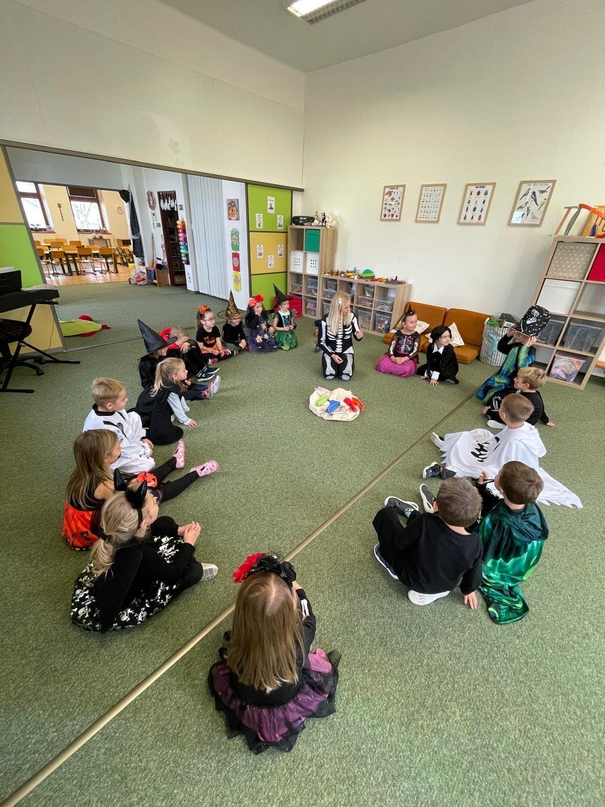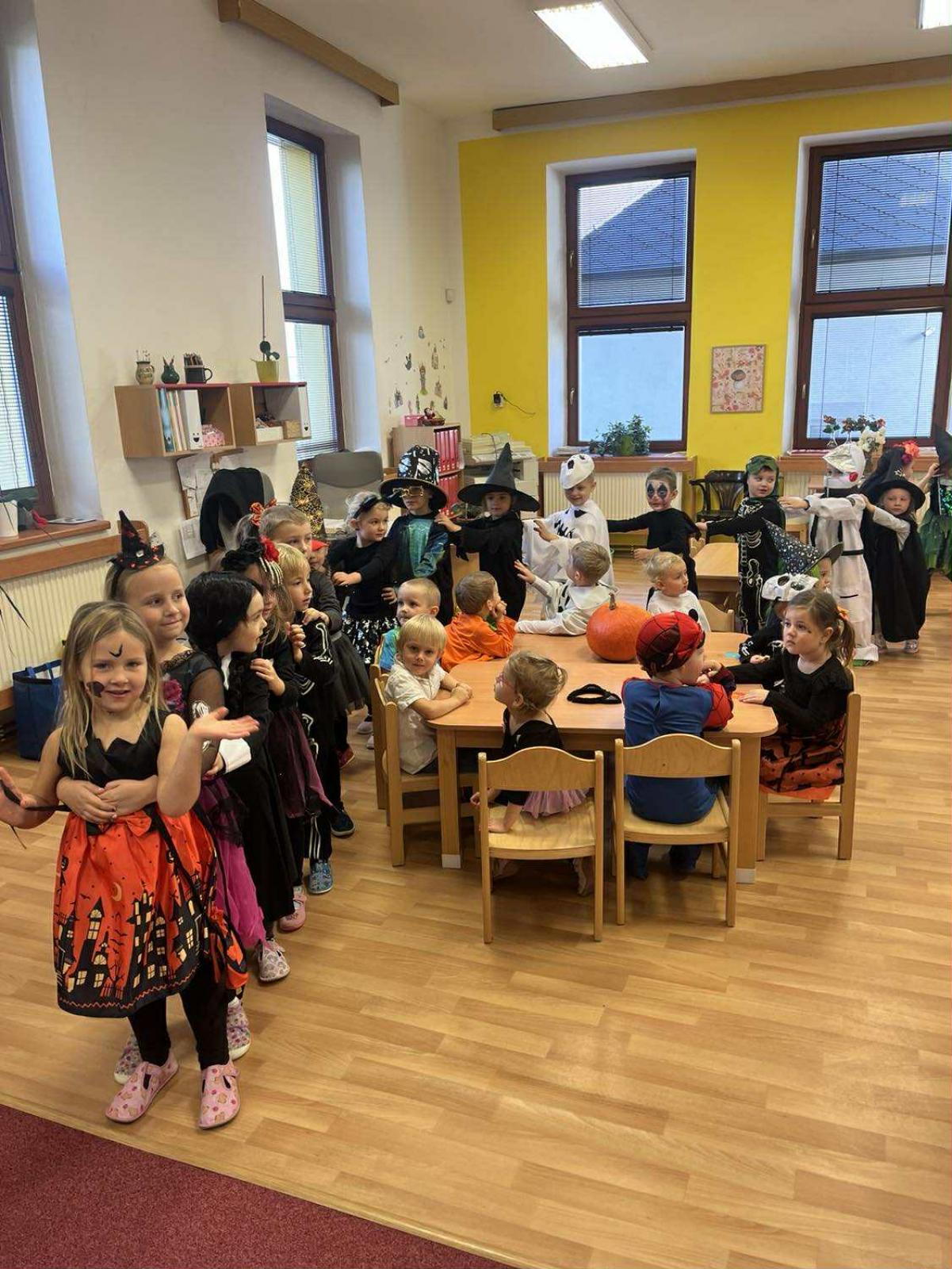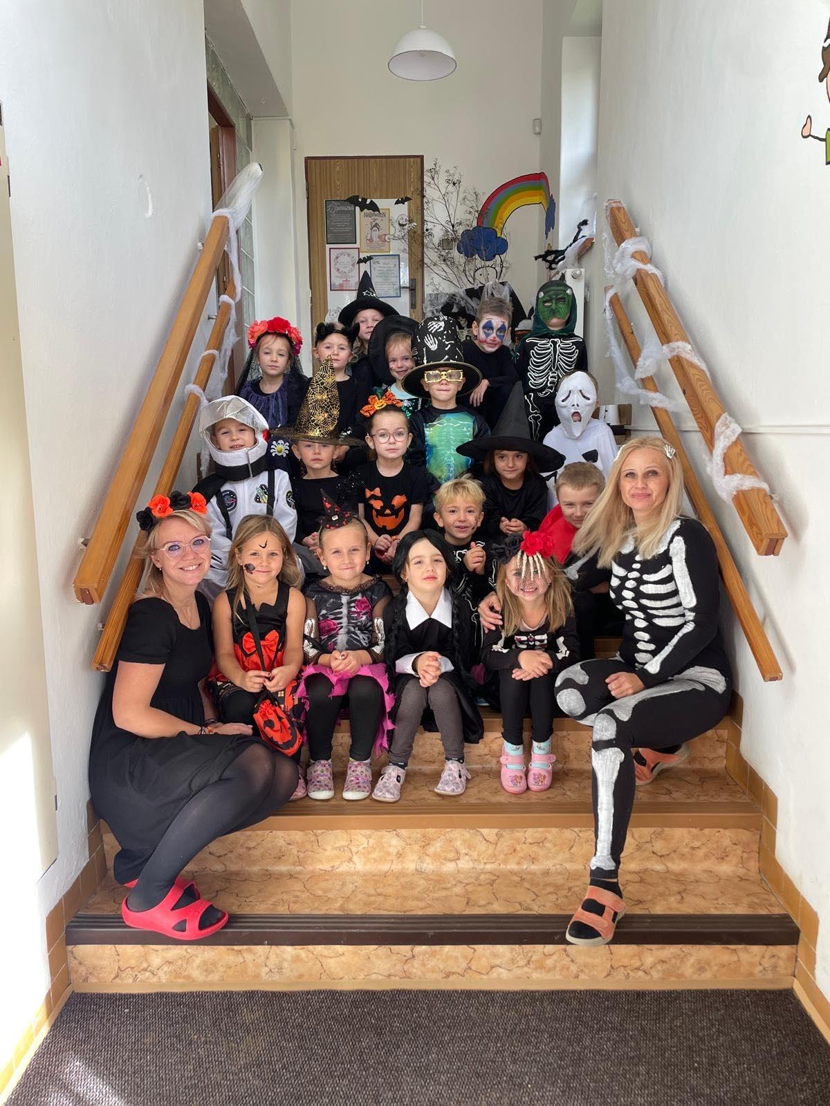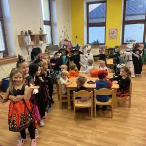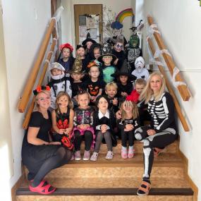 Dnes jsme si ve školce užili oslavu Halloweenu. Na děti čekaly zábavné soutěže, ukázka kostýmů , strašidelný tanec a mnoho dalšího. Děti z Berušek si také vyzkoušely dlabání dýně a Motýlci vyrazili na procházku na strašidelný zámek.
