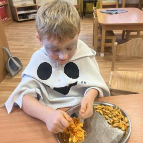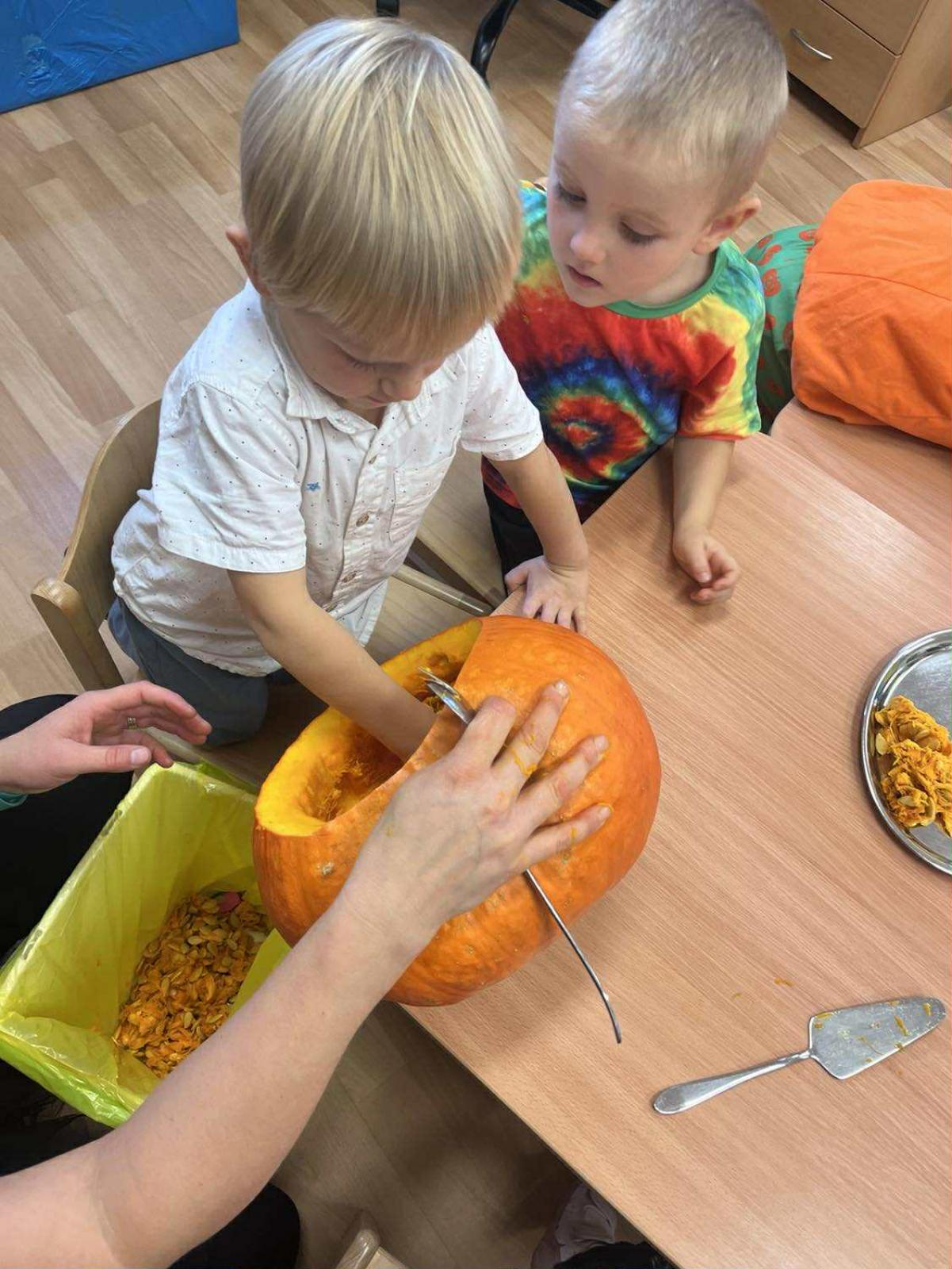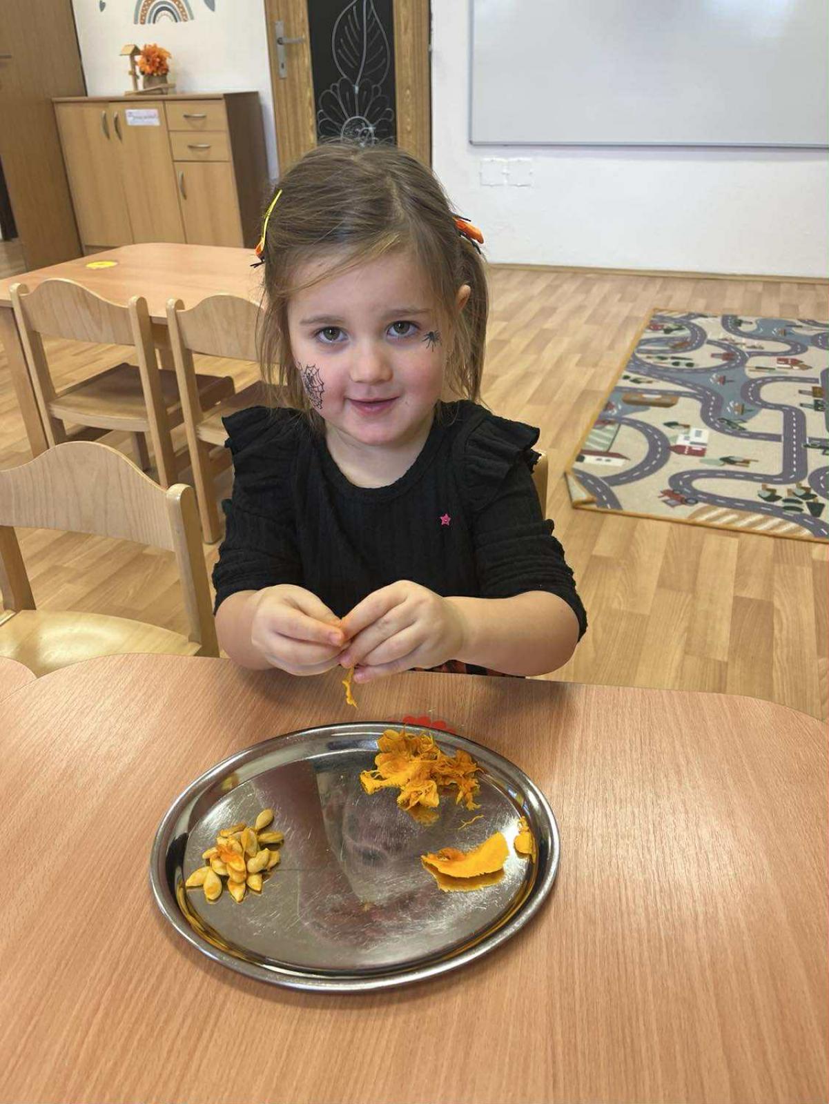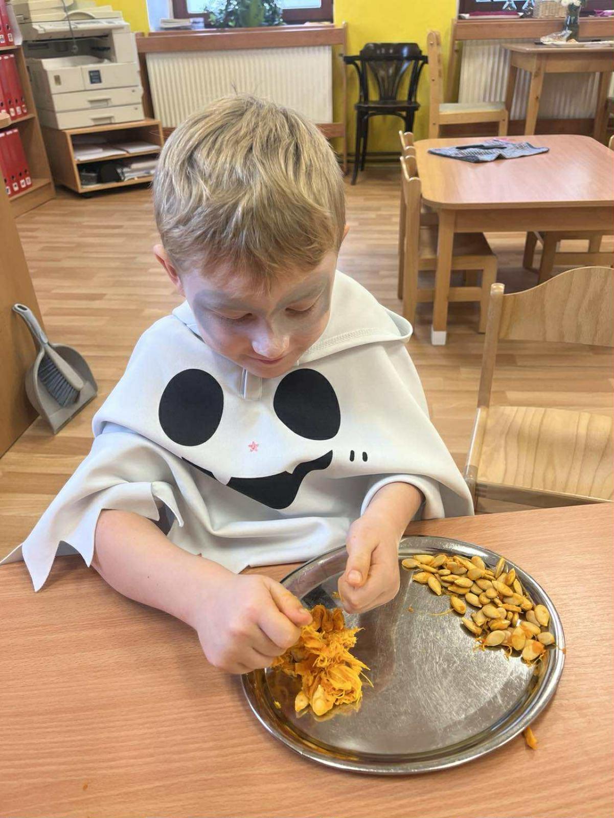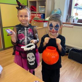 Dnes jsme si ve školce užili oslavu Halloweenu. Na děti čekaly zábavné soutěže, ukázka kostýmů , strašidelný tanec a mnoho dalšího. Děti z Berušek si také vyzkoušely dlabání dýně a Motýlci vyrazili na procházku na strašidelný zámek.